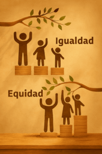 Pues ahí está la gran diferencia, cuando repartimos con igualdad, a todas las personas les toca la misma cantidad, “trozos” completamente iguales. En cambio, cuando repartimos con equidad, se reparten todos los trozos, pero dependiendo de las necesidades, cada persona puede recibir un trozo diferente.